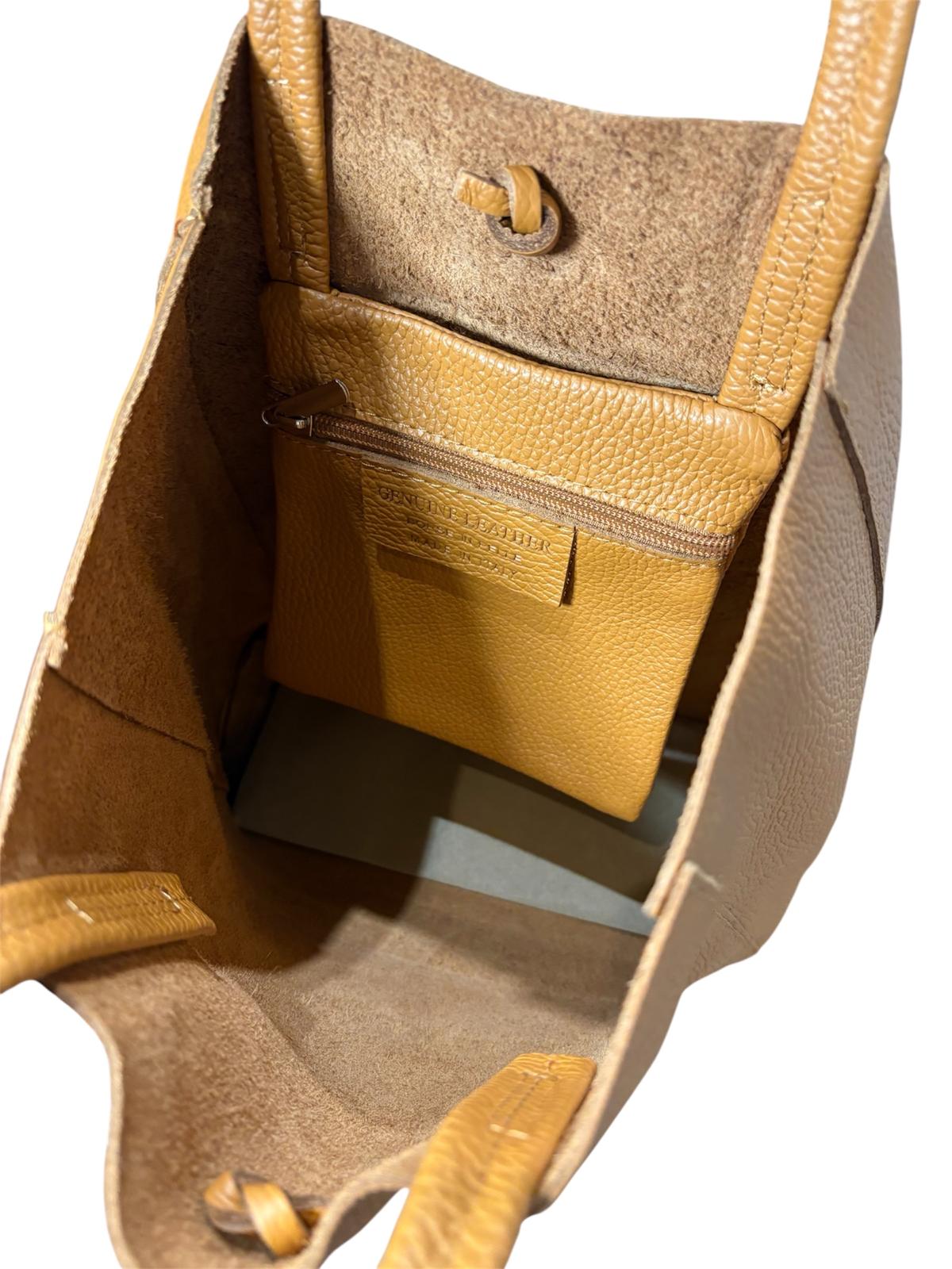 bolso piel camel , ideal con asa larga para llevar al hombro , lleva dentro una cartera incorporada y un lazo para cerrar